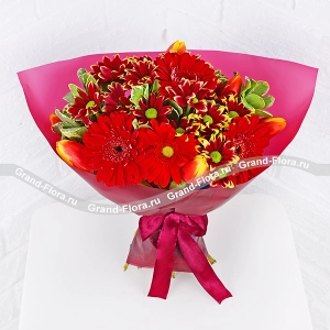 Пёстрые узоры - букет из кустовой хризантемы и альстромерии